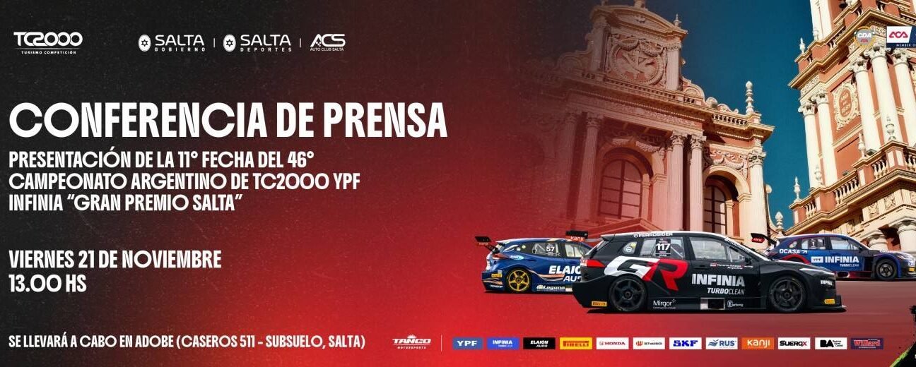 El viernes 21 de noviembre, a las 13.00 hs., se realizará la presentación oficial del “Gran Premio Salta” de la 11º fecha del 46º Campeonato Argentino de TC2000 YPF INFINIA.