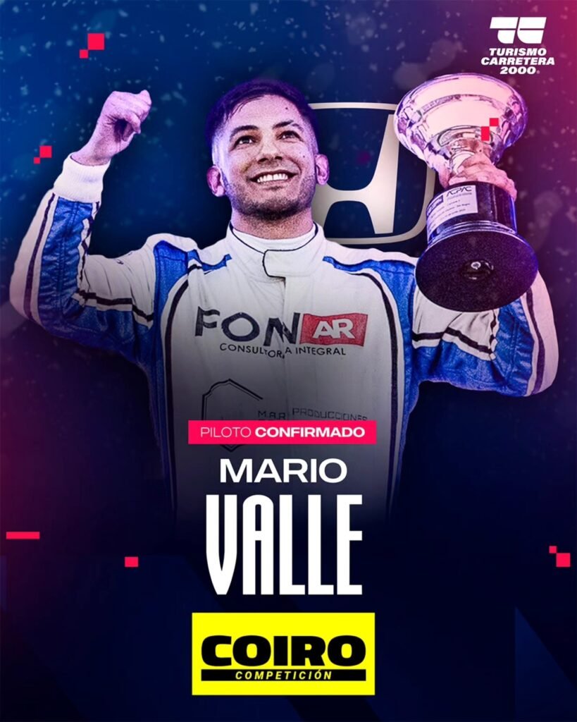 El Coiro Competición continúa definiendo su estructura para la próxima temporada del Turismo Carretera 2000. Ahora confirmó a Mario Valle como uno de los pilotos para conducir el segundo Honda. El representante de Rawson, Chubut, será compañero de “Berni” Llaver y de “Josito” Di Palma dentro de la escuadra que dirige Marco Jakos, que este año contará con cuatro unidades.