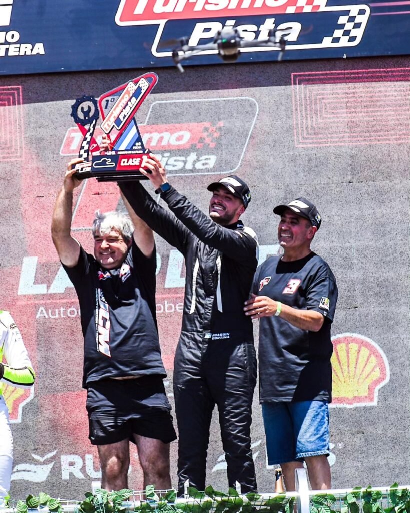 Joaquín Cortina y el Fiat Uno atendido por el equipo familiar festejaron en la carrera de la Clase Uno del Turismo Pista en el Autódromo de La Plata, escenario de la primera fecha de la temporada 2026. Juan Martín Albanese y Lucio Rodríguez completaron el podio.